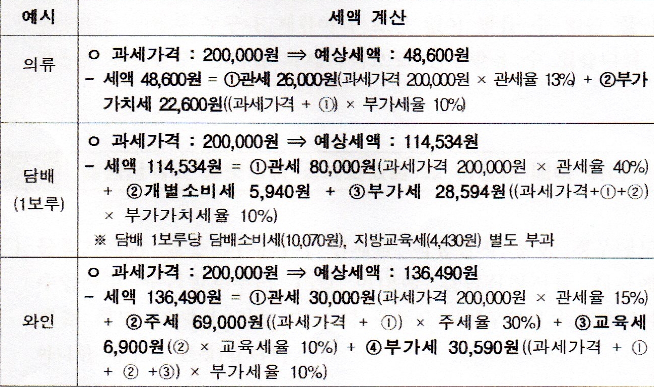 *물품 가격이 미화 150불 이하인 경우 관세, 부가가치세는 면제되며, 관세율은 관세의 종류에 따라 달라집니다. (예 : FTA 협정 관세)
