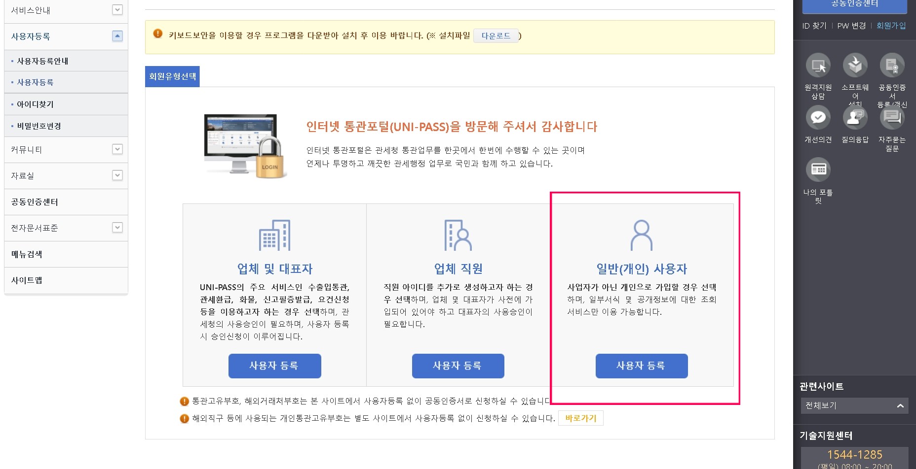5. 관세청 유니패스 회원가입 및 공인인증서 등록이 되었는가??