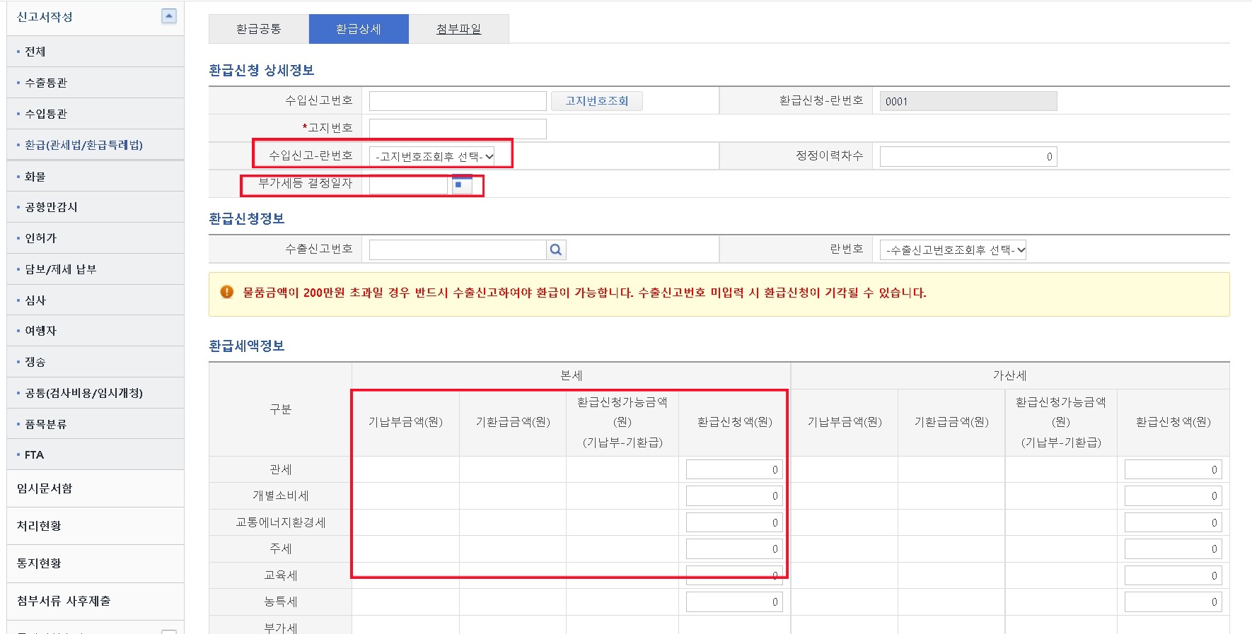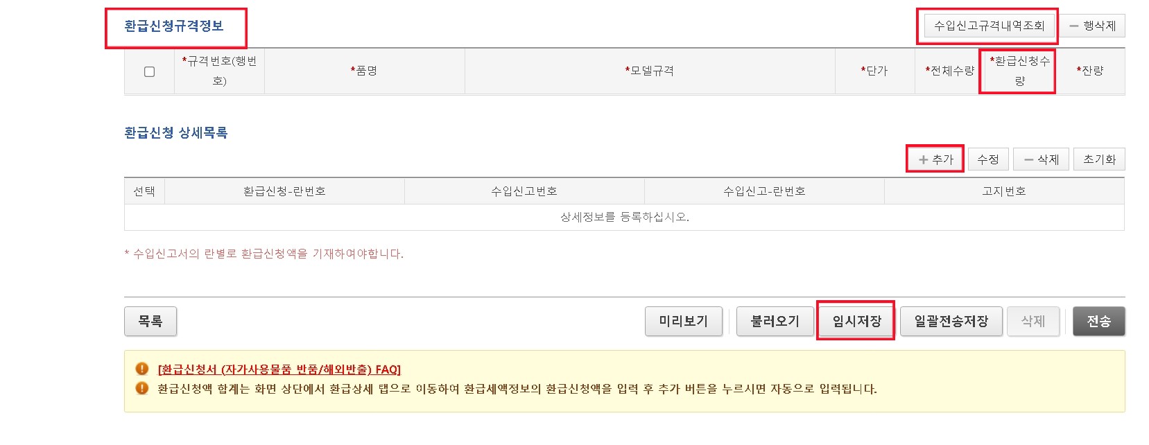 ※환급신청액 합계 항목은 환급 상세 작성 후 추가 시 자동 입력
