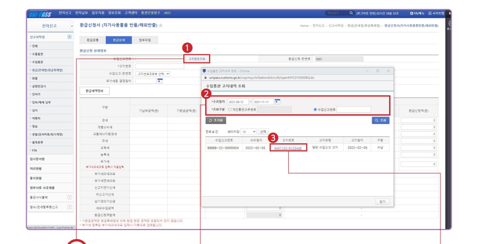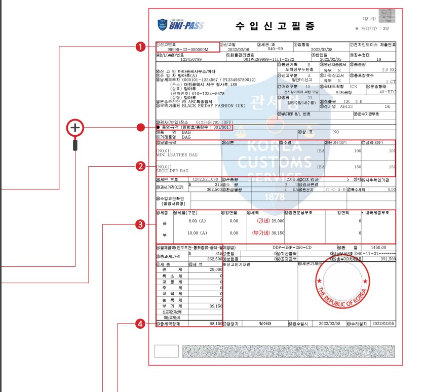 수입신고 시 발급되는 신고번호로 환급신청 또는 세관직원과 상담 시 꼭 필요한 정보입니다.